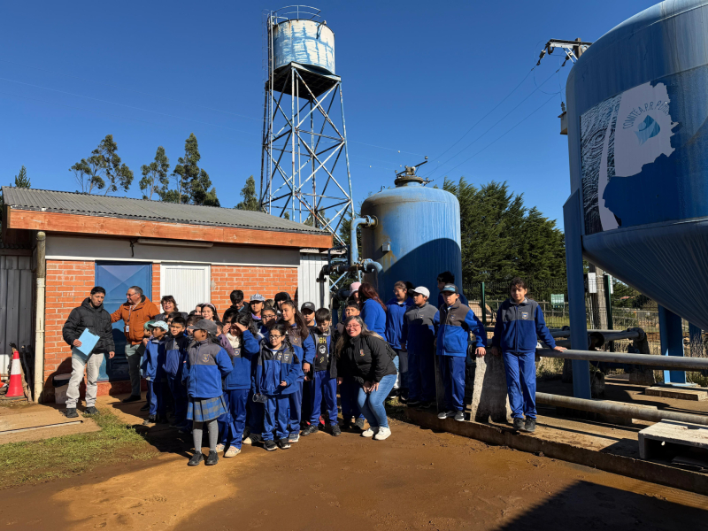 Más de 30 alumnas y alumnos asistieron a las dependencias del servicio sanitario rural del sector, para conocer el proceso de captación y distribución del agua que llega a cada una de las casas de Pehuén.