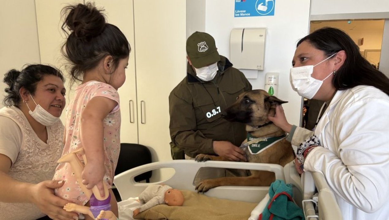 Los perritos llegaron acompañados de sus guías para celebrar el Día de las Infancias en los servicios de pediatría y psiquiatría del recinto de salud público y recibieron de manera simbólica una credencial hospitalaria. La actividad fue coordinada por el Subdepartamento de Protección Integral a la Infancia y Adolescencia, Chile Crece Contigo, Aulas Hospitalarias, el área de calidad y la Oficina de Integración Comunitaria de Carabineros de Ovalle, quienes en conjunto aseguraron un encuentro seguro y bajo todos los protocolos correspondientes para vivir un momento de felicidad y aportar en la recuperación de las y los menores.